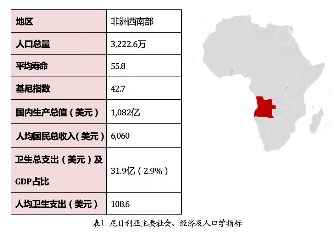 据安哥拉国家统计局最新人口普查结果,安哥拉拥有人口3,222.6万,其中65岁以上人口约占总人口的2.4%,24岁以下人就占总人口的65%。2016年,人均健康寿命为55.8岁。当地高生育率、高儿童死亡率和高孕产妇死亡率为卫生系统带来了额外的负担——在每名妇女的生育率高达6.3个孩子,且只有57%的妇女在训练有素的医护人员的帮助下生产的背景下,孕产妇死亡率高达6.1/1000人,五岁以下儿童的死亡率为69.2/1000 例,主要由肺炎、腹泻类疾病以及疟疾导致。
