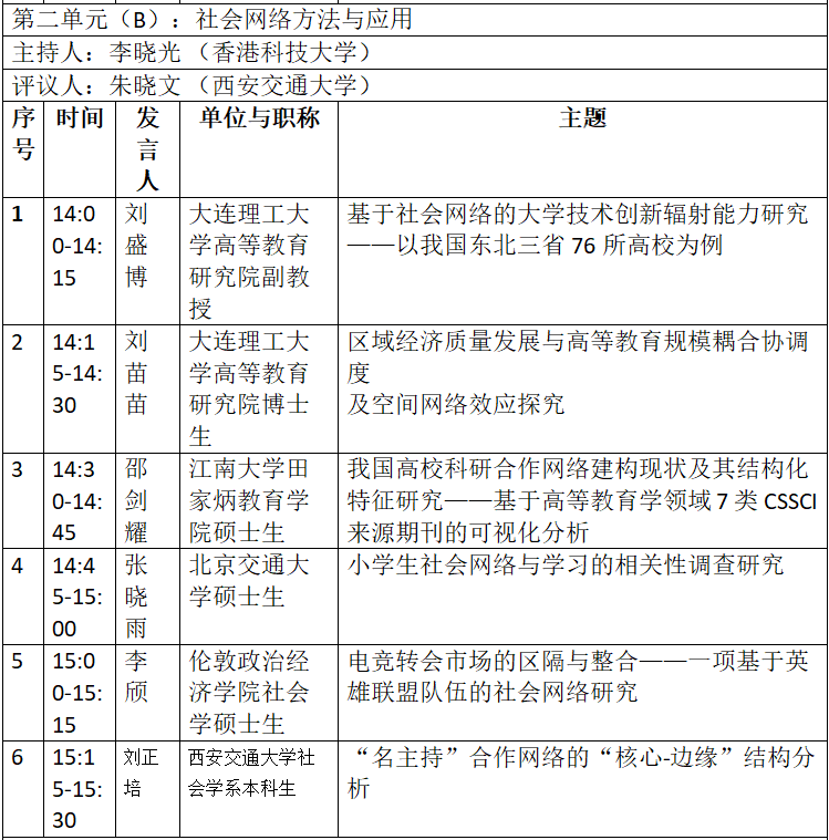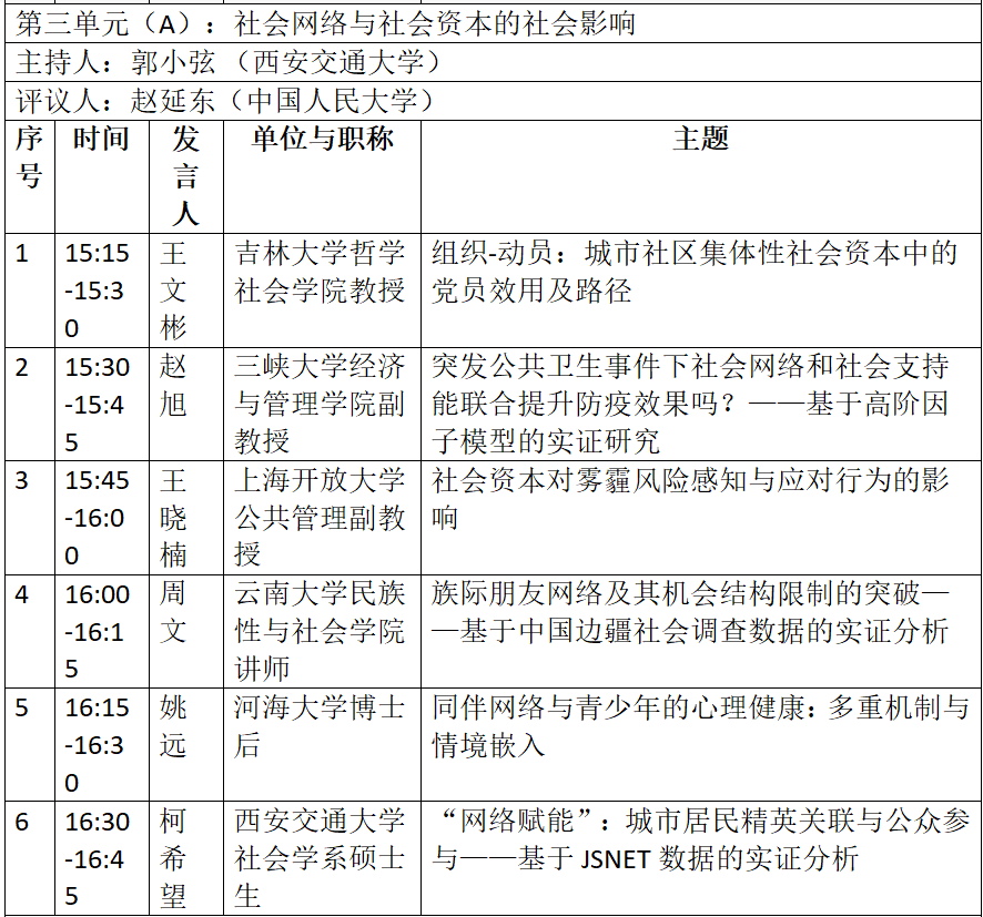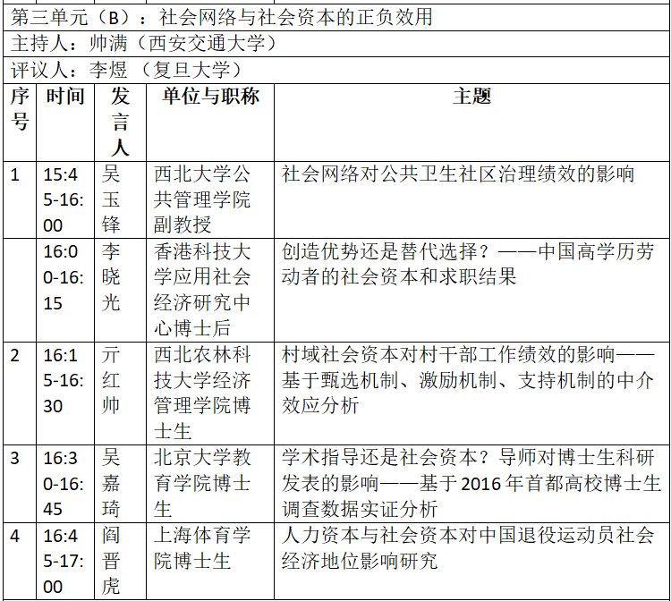 通知|“社会网络与社会资本”分论坛日程