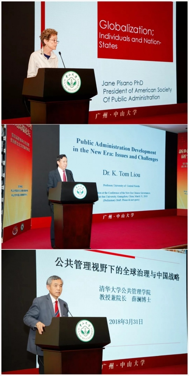 由复旦大学竺乾威教授主持,美国公共行政学会会长、南加州大学Jane Pisano教授,美国中佛罗里达大学刘国材教授,清华大学公共管理学院院长薛澜教授发表了主题演讲,探索全球化、全球治理、中国治理等公共管理的重要议题。