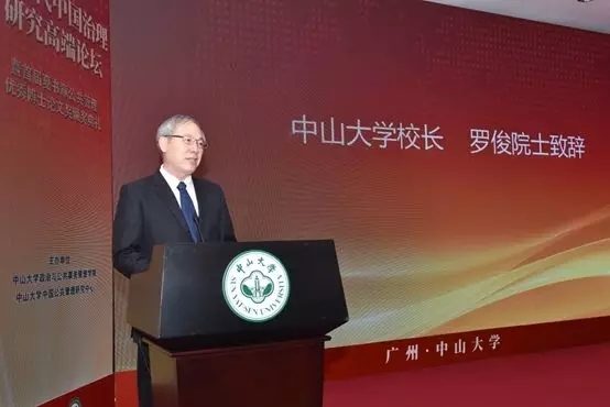会议首先由中山大学校长罗俊院士致辞。他表示,夏书章教授曾是中山大学最年轻的教授,他不仅见证了中国公共管理学科的复兴与发展,也见证着中山大学的成长繁荣,为中山大学推动一流学科建设做出了巨大贡献。今天我们党强调“不忘初心、牢记使命”,这种使命感,夏书章教授一直在自觉践行。