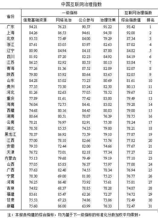 全国第一个“互联网治理指数报告”出炉,广上北跻身前三,浙江紧随其后