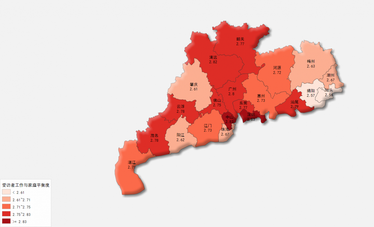 图20 广东省21个地级市受访者工作与家庭平衡度对比