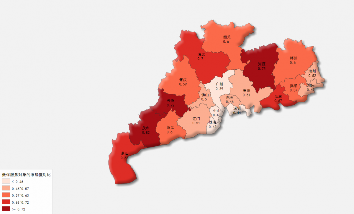 图8 广东省21个地级市低保服务对象的瞄准精度对比
