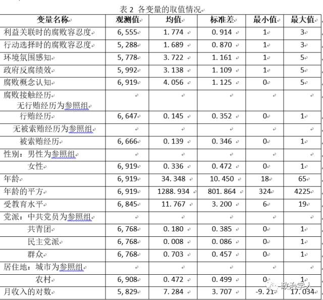本文中的解释变量包括环境氛围感知、政府反腐绩效、腐败概念认知、腐败接触经历等。具体测量方法如下: