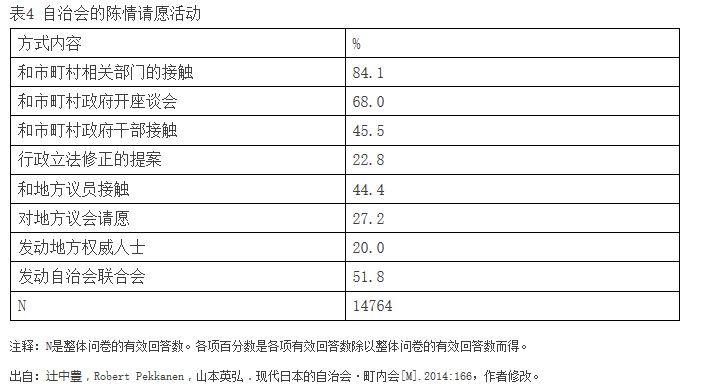 表4 自治会的陈情请愿活动