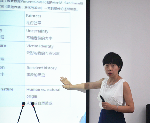 沙龙的第二部分,张老师介绍了风险沟通理论、框架及对策建议。