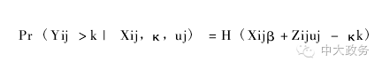 由于本文中的数据同时涉及了宏观层面和微观层面,运用传统的统计模型不能解决个体不独立的问题。因此,本文采用多层线性模型 ( Hierarchical Linear Model,HLM) 进行统计分析,该方法能够有效地将不同分析层次变量整合到同一个分析模型中。由于因变量是定序变量,故需采用最大似然估计法。本文的模型设定如下: