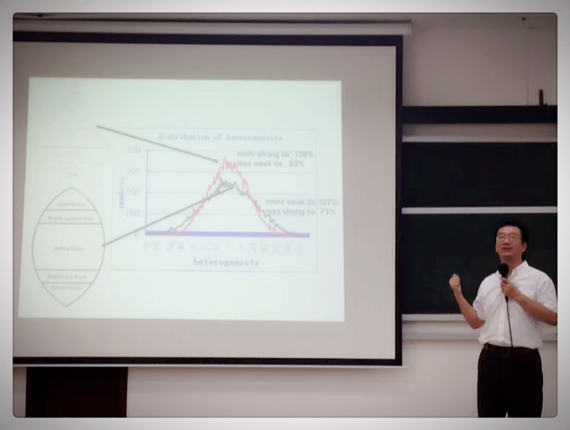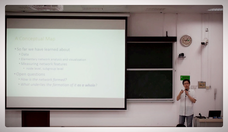 第五天和第六天上午,香港中文大学社会学系江彦生老师展开了三场以“network modeling”为主题的计算社会科学前沿讲座。主要介绍了网络分析方法、如何用R语言这一工具来模拟网络和进行网络分析。最后,江彦生老师为大家详细分析了网络分析的一个经典模型——ERGM(Exponential Random Graph Model)使大家对社会网络分析方法有个更详细,更深刻和更前沿的认识。