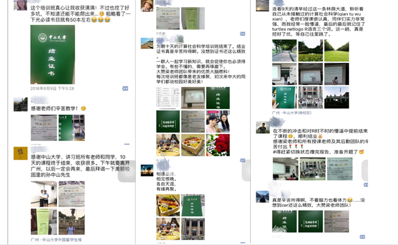 经过这连续8天的学习,学员们不仅接触到了新的研究领域,学习到了新知识,同样也结识了很多志同道合的有识之士,于是大家纷纷晒图表示自己得到了很大的收获,并为讲习班送上了好评。