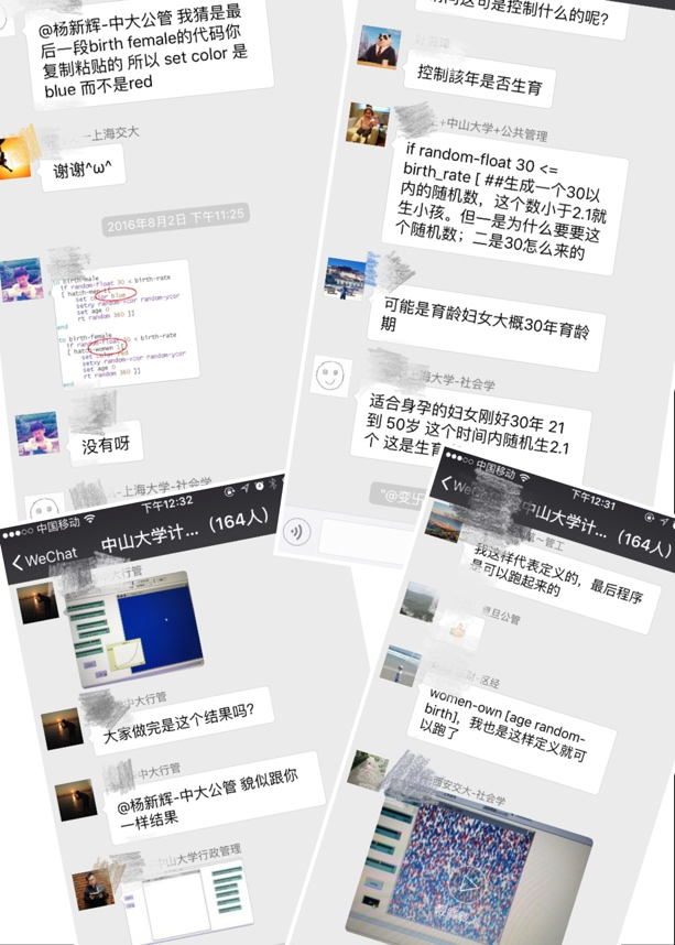 晚上的课程结束后,大家还意犹未尽,在微信讨论群里认真讨论课堂上的模型,相互帮助,解决问题。