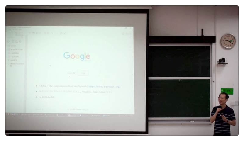 第二天的课程是R语言入门,主讲人是中国社科院社会发展战略研究院陈华珊老师。由于在坐的大多数学员从未接触过R语言,陈华珊老师从R语言相关程序安装开始教起,逐步过渡到如何进行数据导入、数据清理,以及如何使用功能强大的R-package。