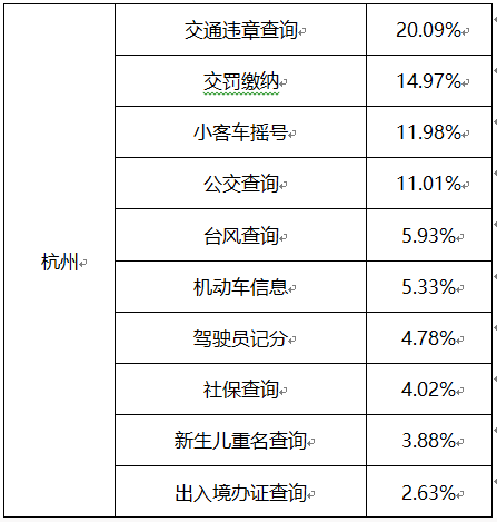 社保、警务、交通占“互联网+政务”八成流量,杭州人最爱用交通违章查询
